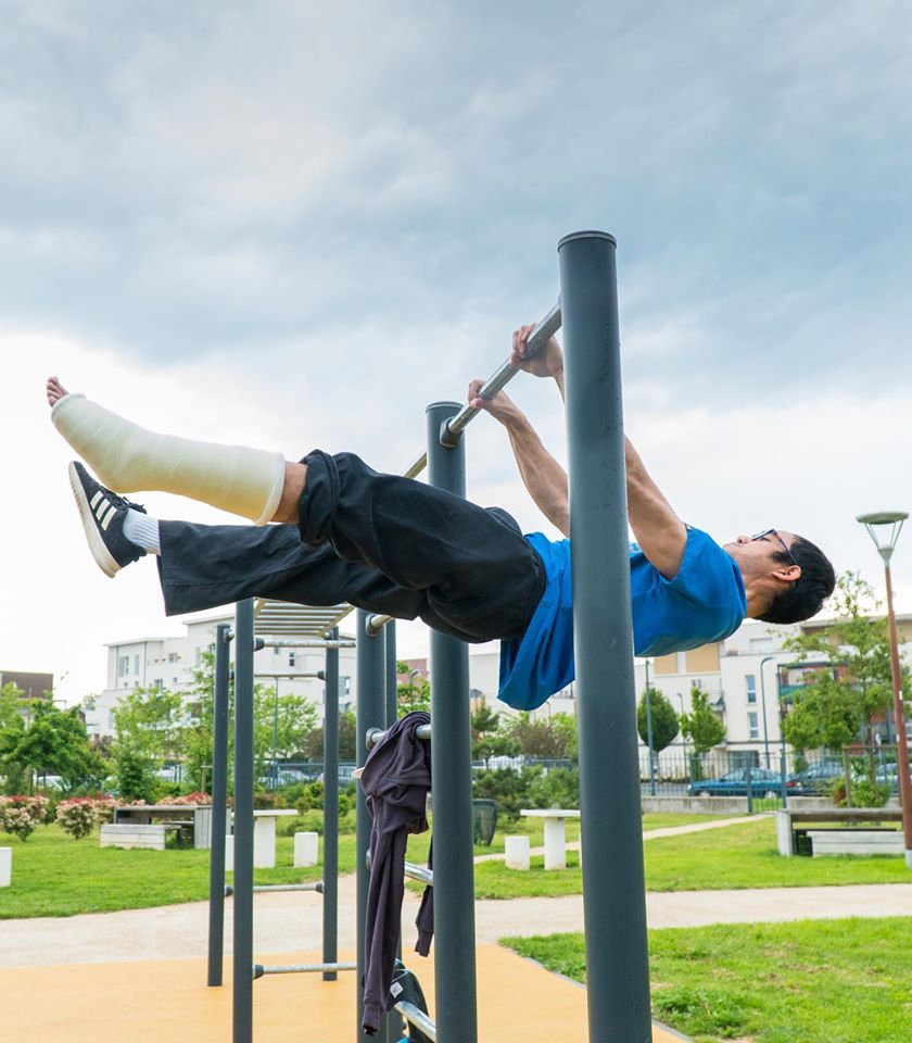Pour la deuxième opération, j’allais plus souvent au Street Workout. Le gros challenge c’était de faire suffisamment d’exercice pour travailler mais pas trop afin de ne pas transpirer dans le plâtre.